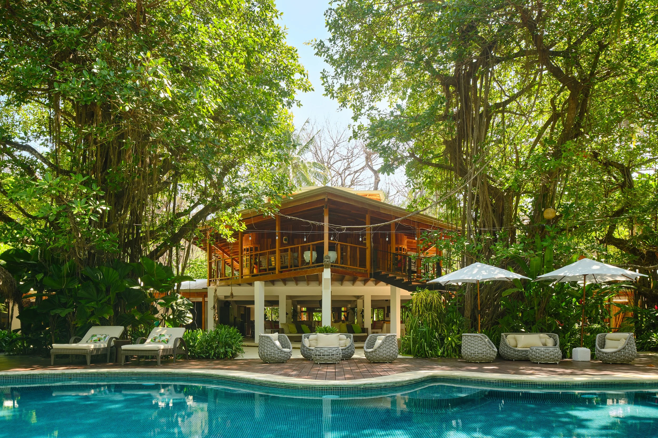 Casa Capitan & Casa Dewa are one of the finest homes in the area. These two beachfront homes are elegant, and at the same time very relaxed and comfortable. Beautiful open air living area are directly in front of the pool and lounge area. The hammocks, “Ranchos” (day beds with straw roof), and lounge chairs around the pool areas are the ideal place to relax and enjoy an ice-cold drink after a long day at the beach.